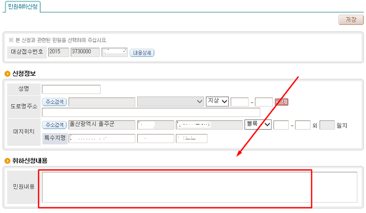- 건축주 정보를 넣고 > 간단하게 민원취하하는 이유를 적는다.(간략하게 적으면 됨)