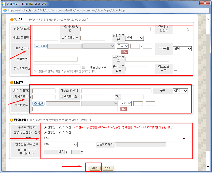 역시 각 칸에 정보들을 입력해주고 > 확인 클릭